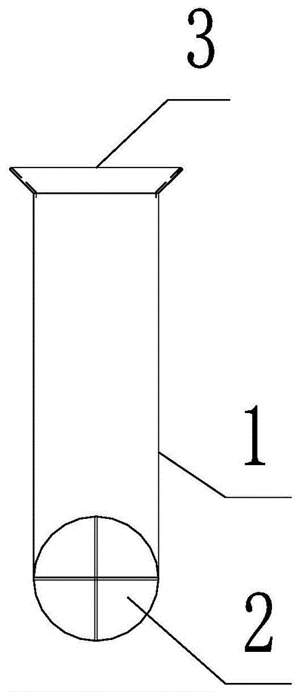 沉淀池套筒閥通過連接的管道和沉淀池組成連通器,利用靜壓差原理,通過調(diào)節(jié)套筒閥的出水高度,排泥并調(diào)節(jié)排泥量。套筒閥的本體1上部通常有一個一字橫梁、底部十字支撐2,一字橫梁的頂部還設(shè)置有傘帽3,如圖1所示。傘帽和十字支撐的存在容易造成絮狀物的纏繞導(dǎo)致堵塞,這樣的結(jié)構(gòu)設(shè)計容易造成套筒閥出水量減小,使污泥回流量、回流比降低。本實用新型正是基于此,提出了一種新型沉淀池套筒閥,旨在克服傳統(tǒng)套筒閥的上述缺陷,提高污泥回流量。